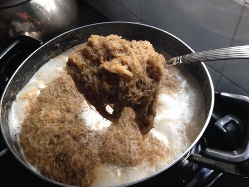 セネガルの海藻からゼリー(寒天)を作り販売することで、漁村の人たちの収入向上につなげられないかというプロジェクトの試作第2弾です。 今回はムブールというダカールから南に行ったところの海藻を使ってみました。